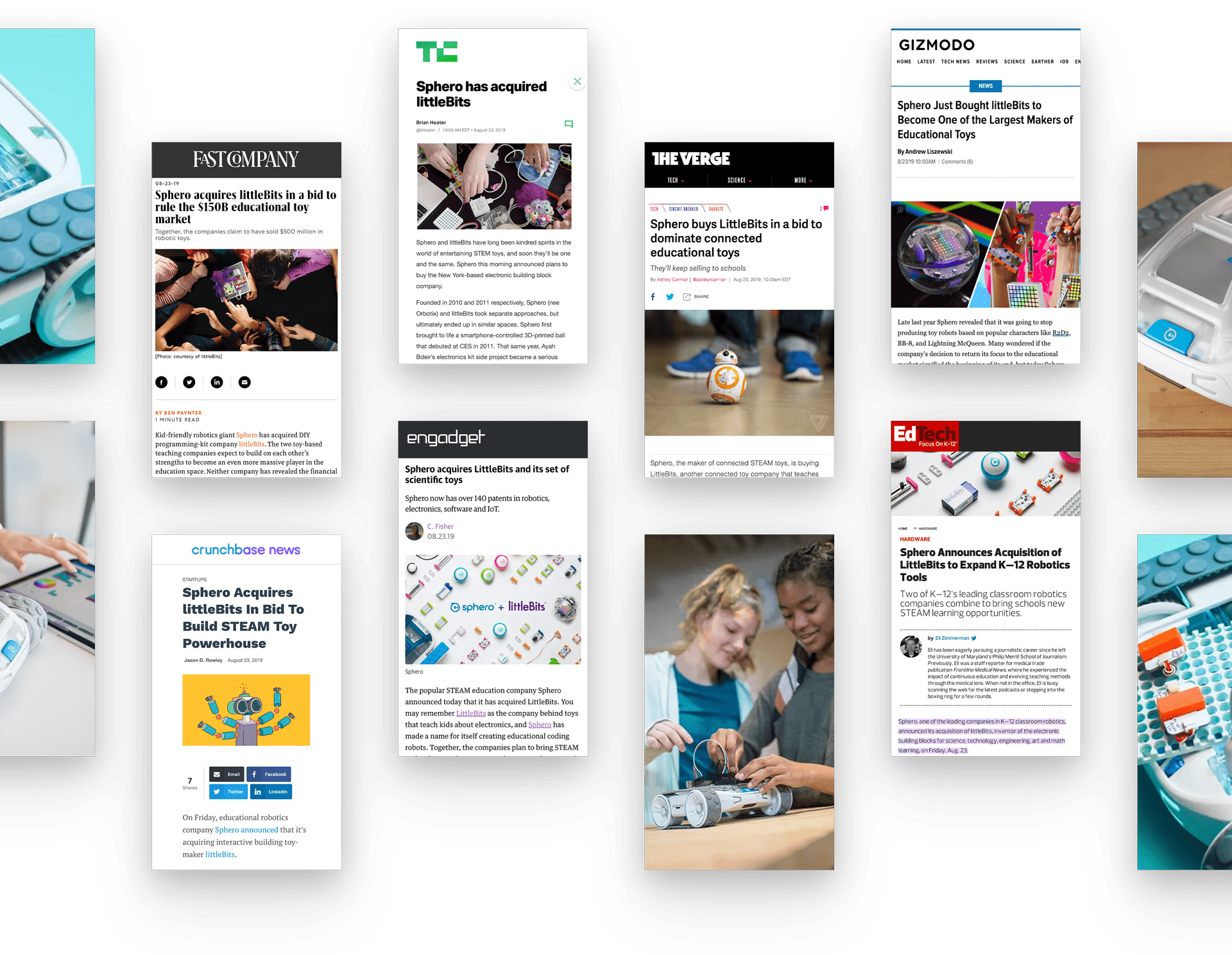 Leveraged Sphero’s acquisition of Little Bits to reinforce leadership in the Ed Tech industry. Targeted coverage in tech and business media helped reshape Sphero’s previously tarnished reputation with tech media.